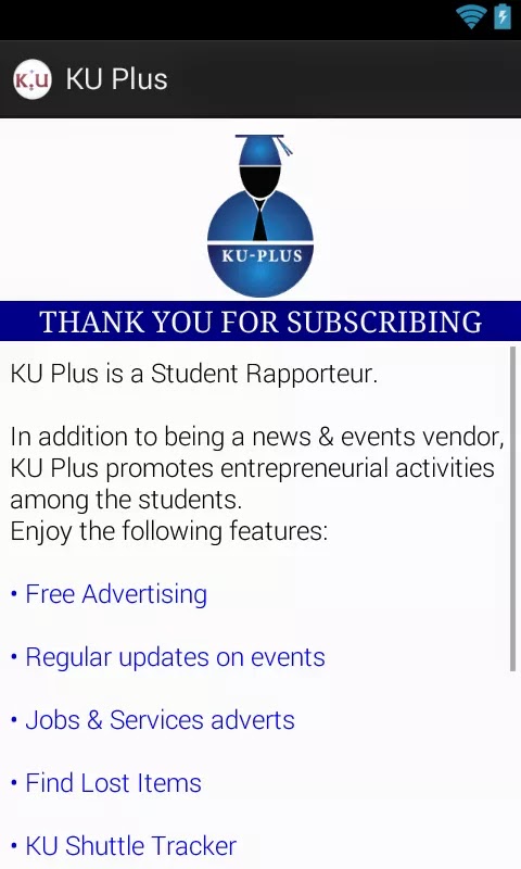 Support the K.U Plus app can be next big thing in K.U – share this app with your fellow comrades as a reliable source of information, free advertisement for your business.